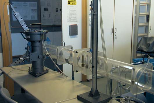 Mit einem Prandtl´schen Staurohr und Tauchglockenmanometer werden Druck- und Strömungsgeschwindigkeiten über den Querschnitt eines Windkanales gemessen.